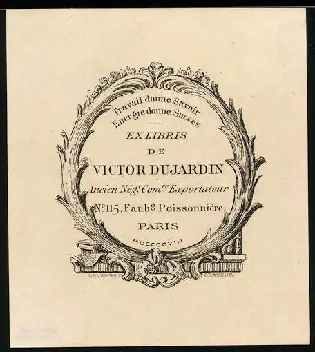 Exlibris Victor Dujardin, Paris, Text im Passepartout