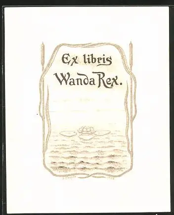 Exlibris Wanda Rex, Seepanorama mit Seerose und Sonnenaufgang