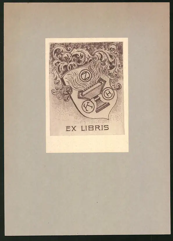 Maße Exlibris: 10cm x 7cm, auf Karton montiert, guter Zustand