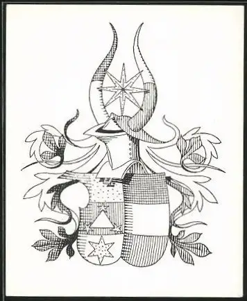 Exlibris Wappen mit Ritterhelm, Hörner und Sterne