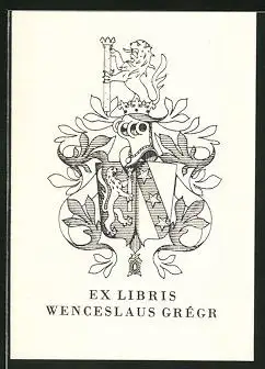 Exlibris Wenceslaus Gregr, Wappen mit Ritterhelm & Löwe