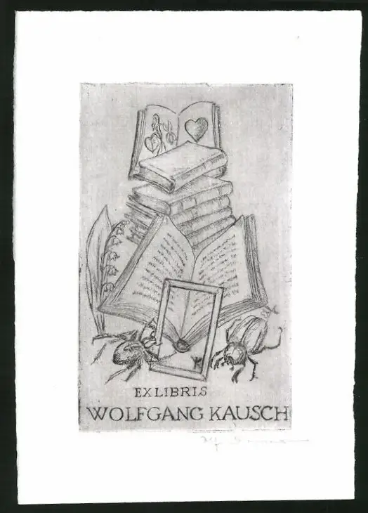 Exlibris Wolfgang Kausch, Käfer krabbeln auf die Bücher