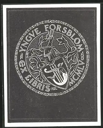 Exlibris Yngve Forsblom, Wappen mit Meerjungfrau und Ritterhelm