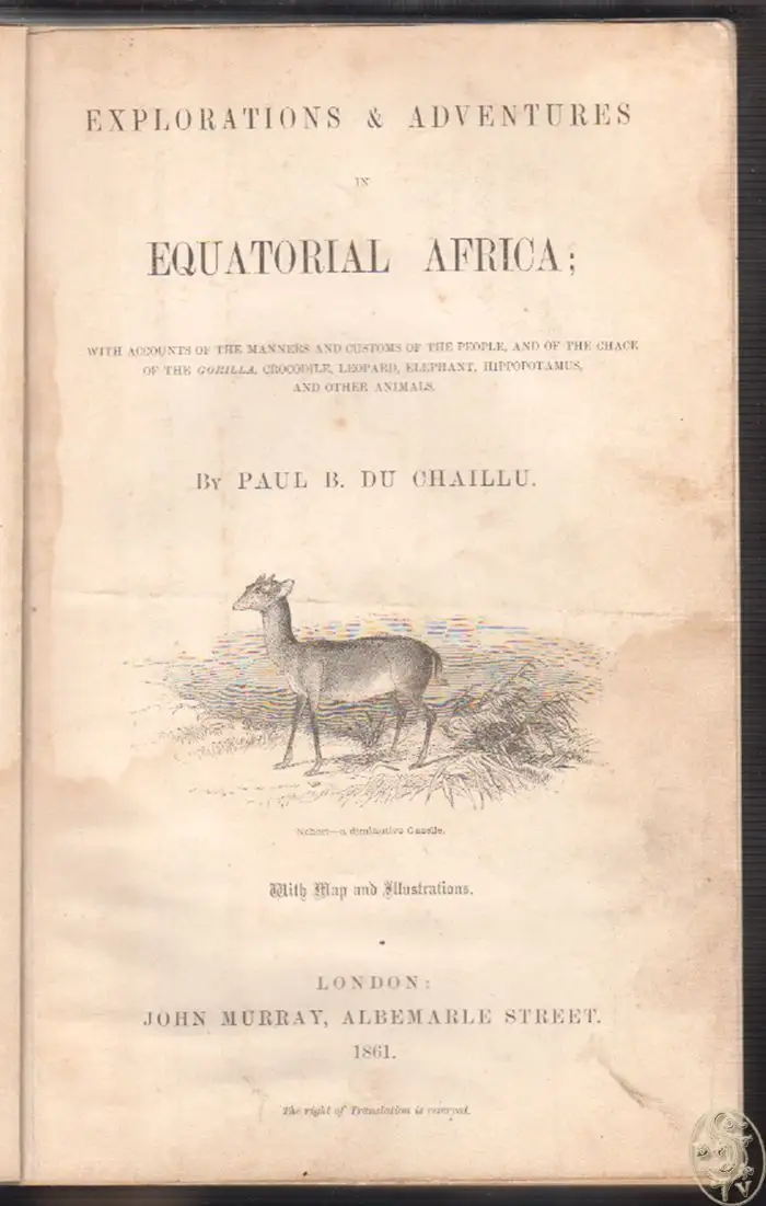 Bemerkungen: Graesse VII, 170f. - Paul Belloni Du Chaillu, 1835-1903, war ein französischer Anthropologe und Afrikaforscher. Du Chaillu erhielt von der Academy of Natural Sciences in Philadelphia den Auftrag, seine botanischen und zoologischen Untersuchungen tiefer in das Innere von Afrika auszudehnen. Während seiner vierjährigen Wanderungen gelang es ihm, den Ogowe an seinem Unterlauf zu erforschen und eine wertvolle naturhistorische Ausbeute zu gewinnen, darunter auch einige Gorillas, die er - wahrscheinlich als erster Europäer - zu Gesicht bekam. Sein vorl. Reisebericht erregte außerordentliches Aufsehen.