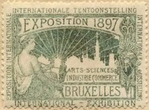 Brüsseler Ausstellung, lasurgrün, weiß, II. Ausführung. , Größe/Zustand: 3x4 , guter Zustand, Original alte Reklamemarke die seinerzeit für die Werbung benutzt wurde