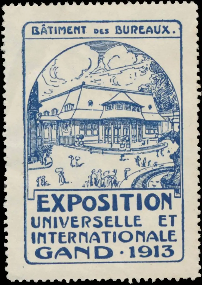 Batiment des Bureaux, Ausstellung, Belgien, Größe/Zustand: 6x4 , guter Zustand, Original alte Reklamemarke die seinerzeit für die Werbung benutzt wurde