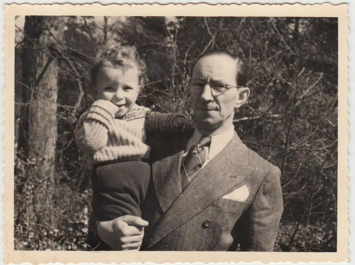 - (F13761) Orig. Foto Herr mit Kind auf dem Arm 1940/50er