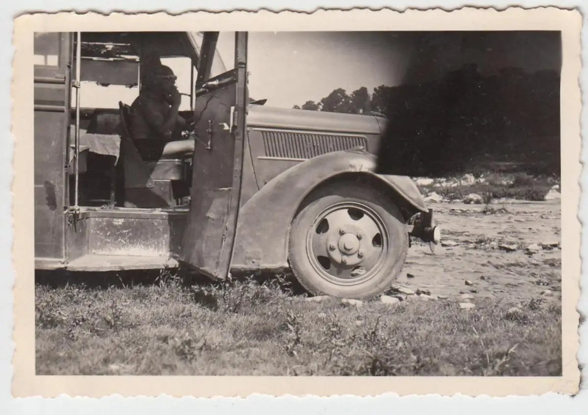 - (F5670) Orig. Foto Herr sitzt in einem alten Automobil, Kleinbus, 1940er