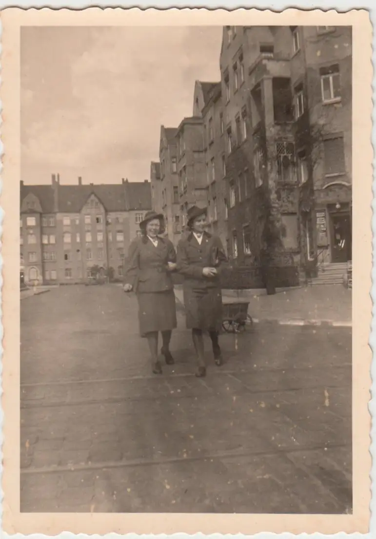 - (F6035) Orig. Foto 2 Damen mit Hut spazieren in einer Stadt