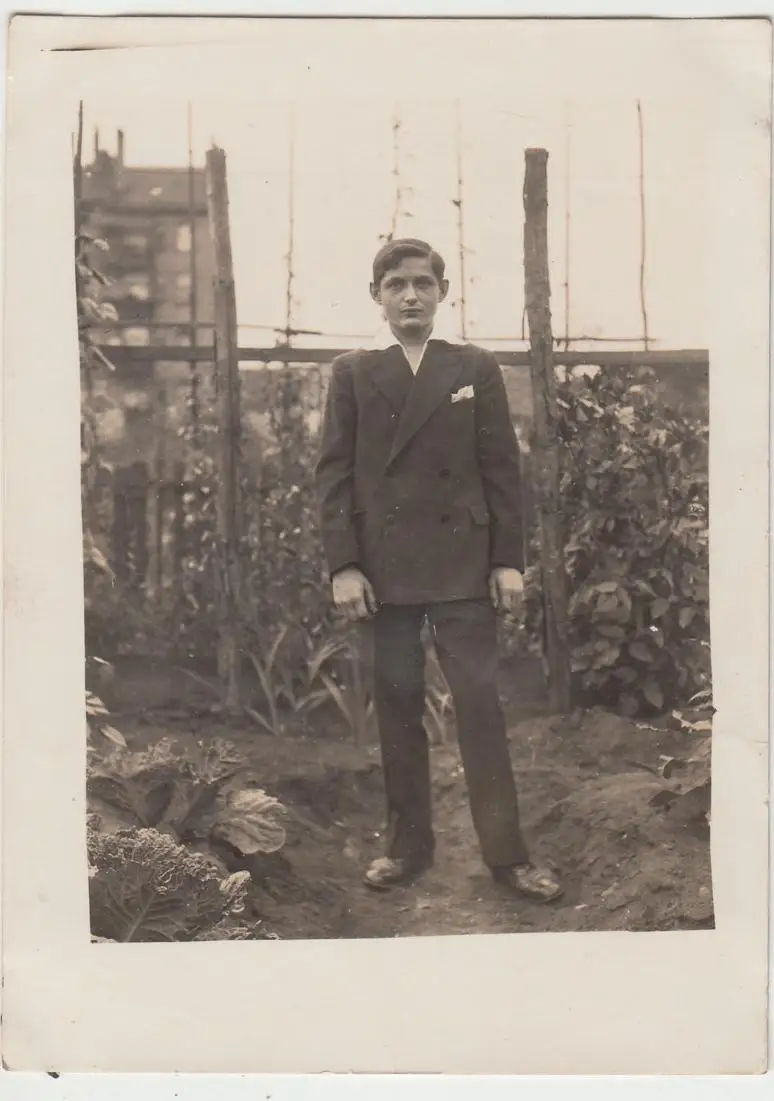 (F8289) Orig. Foto junger Mann steht im Garten, 1930er