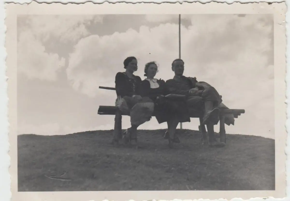 (F8347) Orig. Foto Personen sitzen auf einer Bank, Anhöhe, 1937