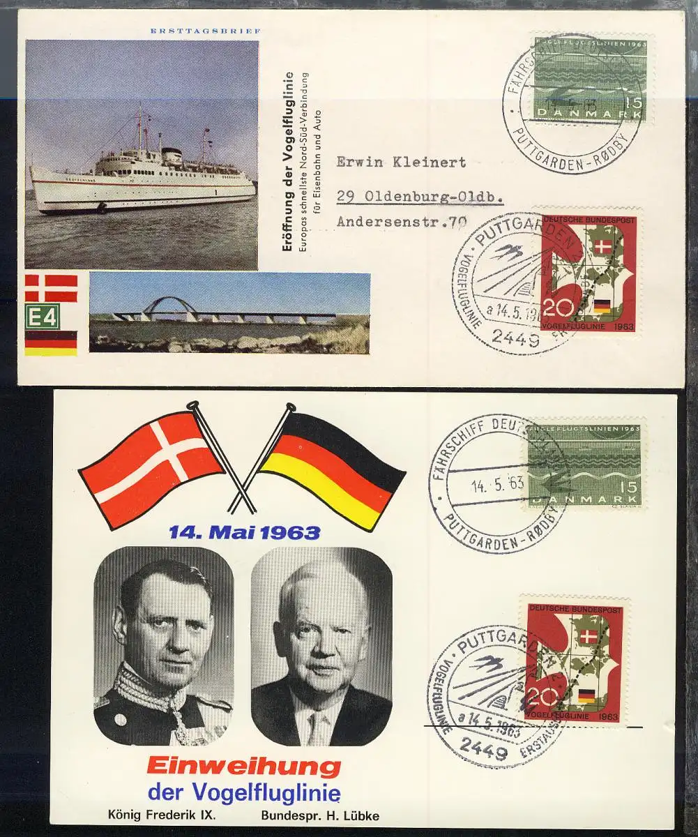 je auf deutschen und dänischen Ersttagsbeleg zur Eröffnung der Vogelfluglinie