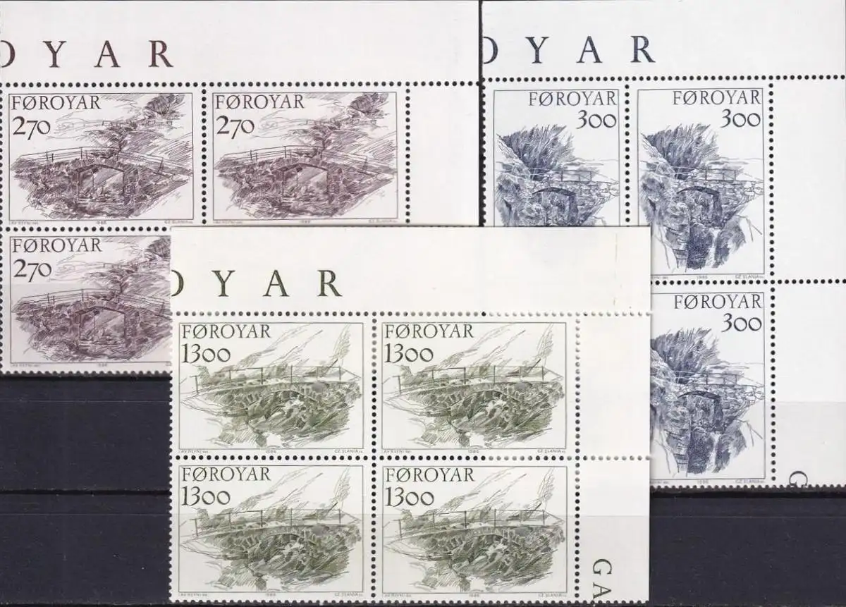 FÄRÖER 1986 Mi-Nr. 142/44 Eckrand-Viererblocks ** MNH