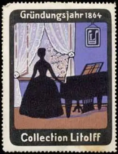Collection Litolff, Gründungsjahr 1864, Größe/Zustand: 6x4 , fleckig, Original alte Reklamemarke die seinerzeit für die Werbung benutzt wurde