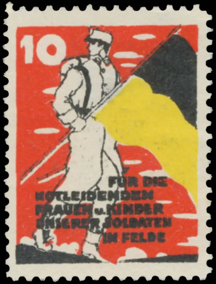 unserer Soldaten im Felde, Spendenmarke, Größe/Zustand: 4x3 , leicht beschädigt, Original alte Reklamemarke die seinerzeit für die Werbung benutzt wurde