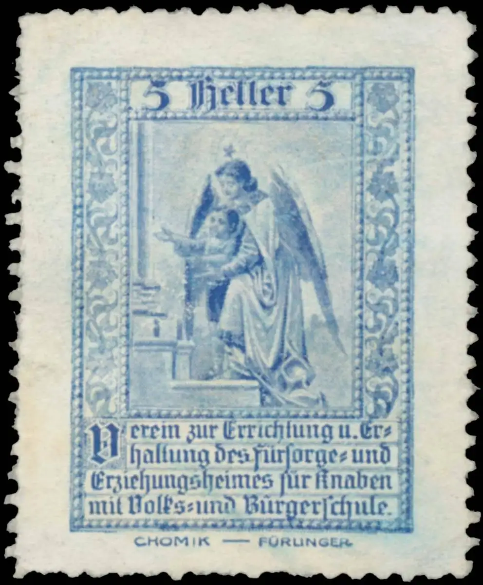 Spendenmarke, Schule, Engel, Druck: Chomik-Fürlinger, Größe/Zustand: 4x3 , leicht beschädigt, Original alte Reklamemarke die seinerzeit für die Werbung benutzt wurde