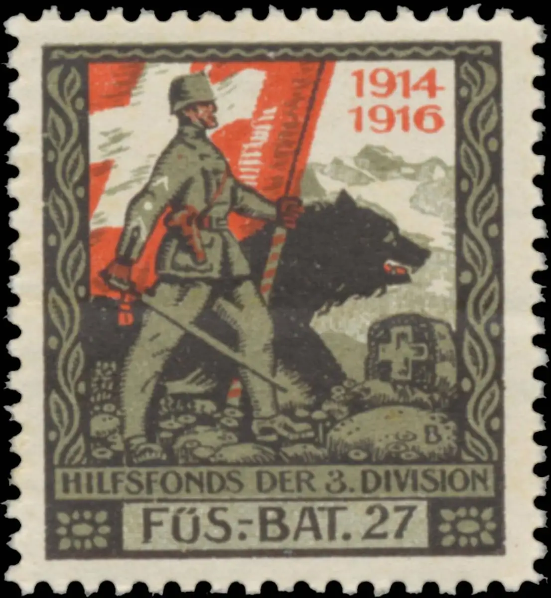 Hilfsfonds der 3. Division 1914, 1916, Größe/Zustand: 3x3 , guter Zustand, Original alte Reklamemarke die seinerzeit für die Werbung benutzt wurde