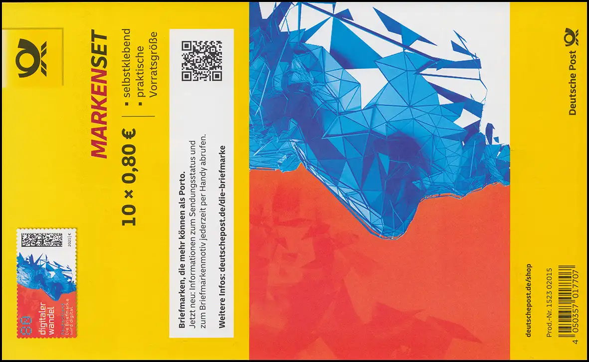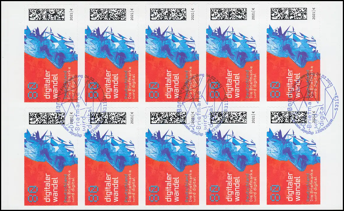 FB 104A Digitaler Wandel, Folienblatt mit 10x 3592 WEIT gestanzt, EV-O BONN