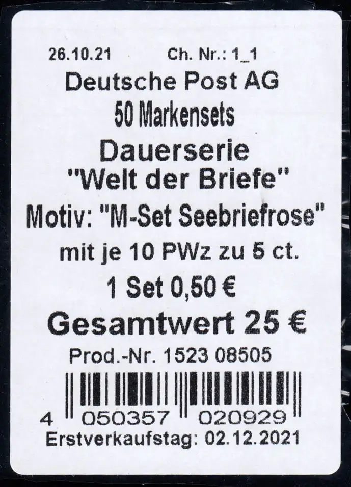 FB 113I Welt der Briefe: Seebriefrose 5 Cent, Folienblatt-BANDEROLE Code lang