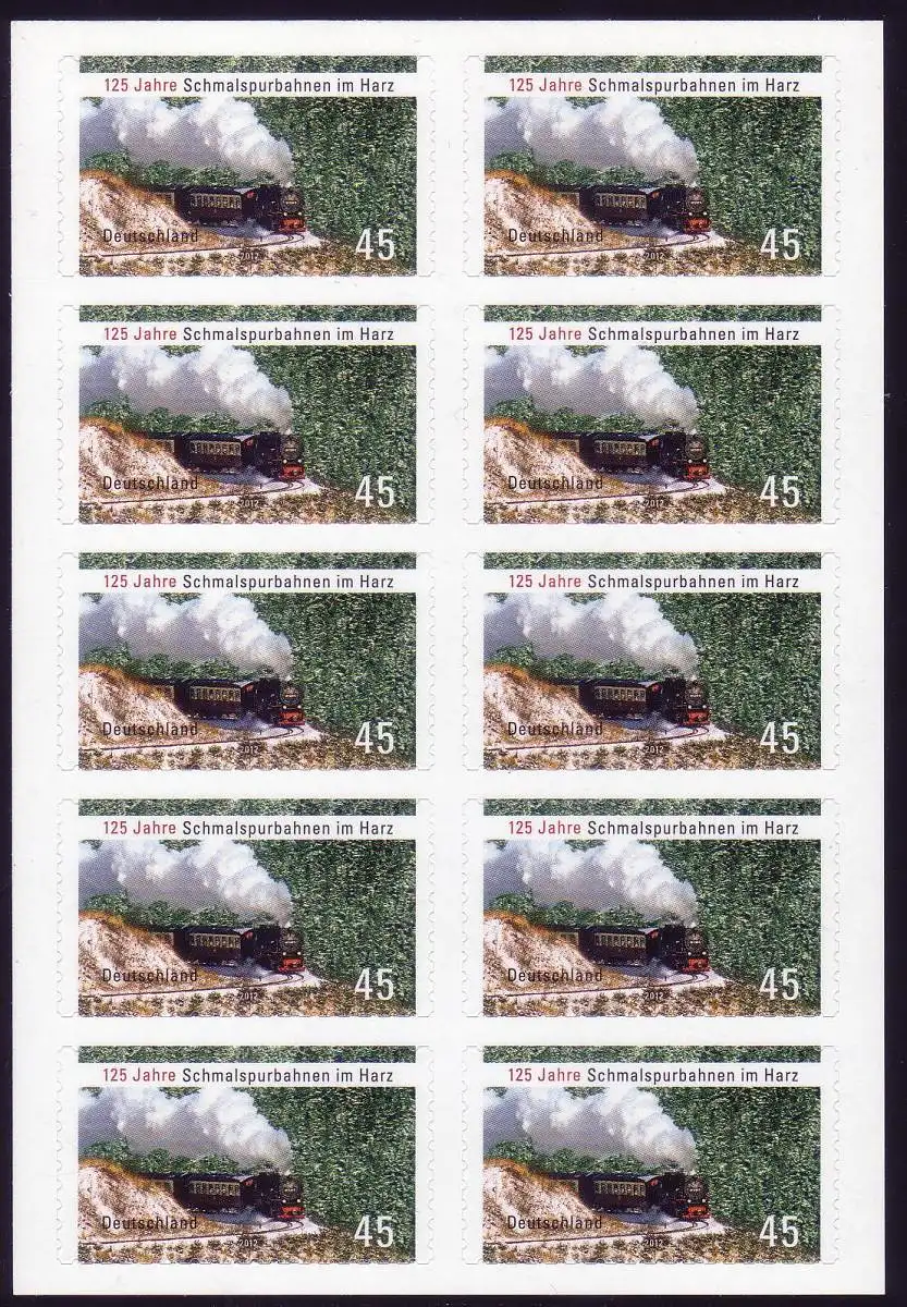 FB 20 Harzer Schmalspurbahn, Folienblatt 10x2916, **