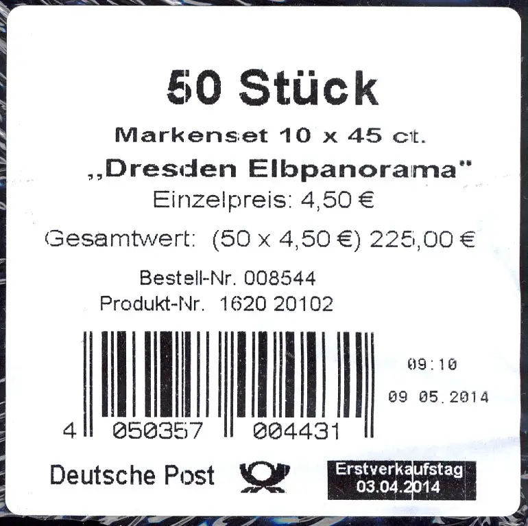 FB 38 Dresden Elbpanorama, Banderole ohne DHL-Code