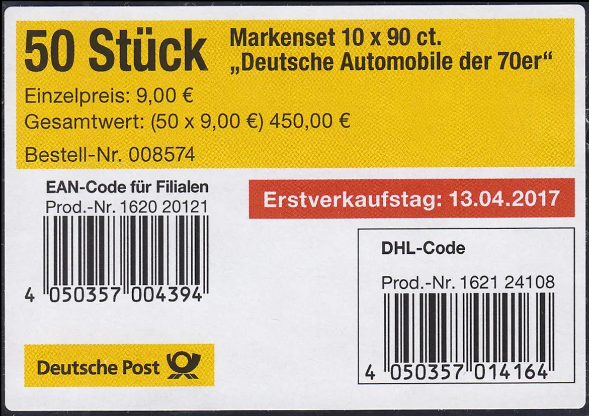 FB 66 Automobile: VW Golf und Opel Manta, Folienblatt-BANDEROLE mit DHL-Code