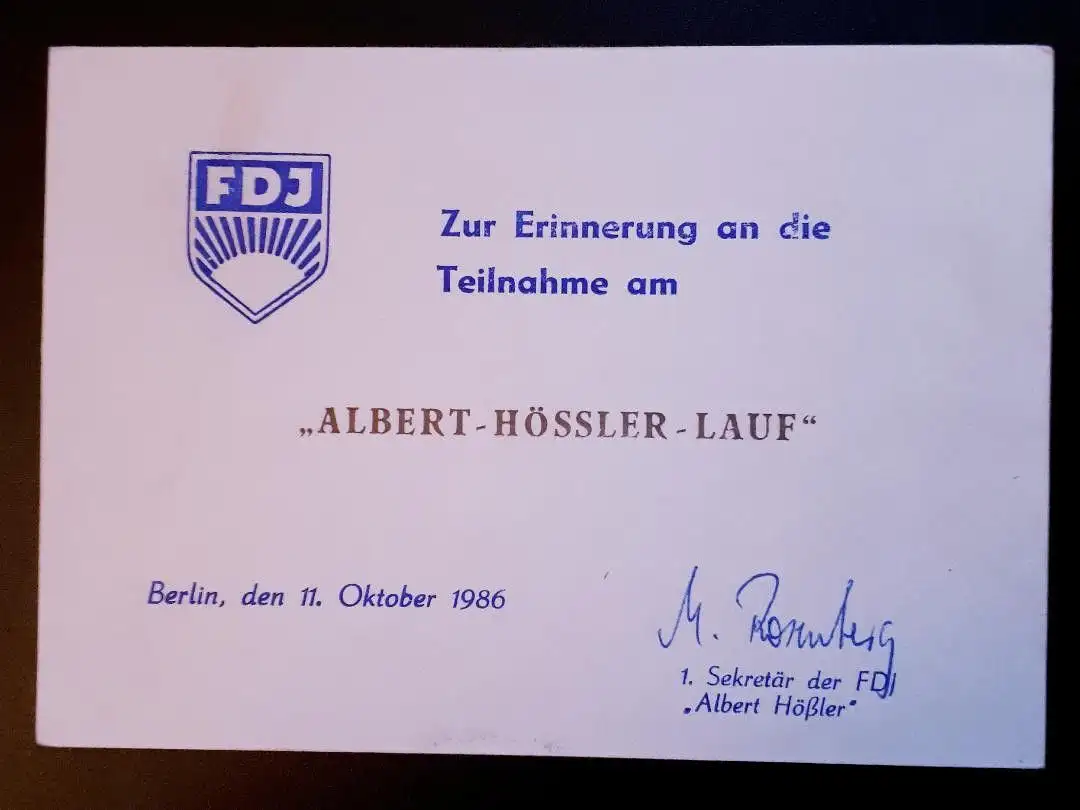 FDJ Erinnerung an die Teilnahme am Albert Hössler Lauf