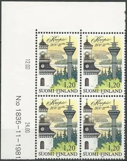 FINNLAND 1982 Mi-Nr. 895 Eckrand-Viererblock ** MNH