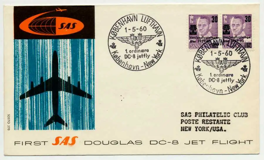 SAS FLUGPOST KOPENHAGEN - NEW YORK FIRST DC-8 FLIGHT