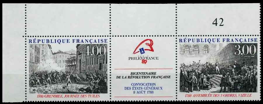 PHILEXFRANCE / 3er Streifen zur franz. Revolution (MichelNr.: 2674, 2675)