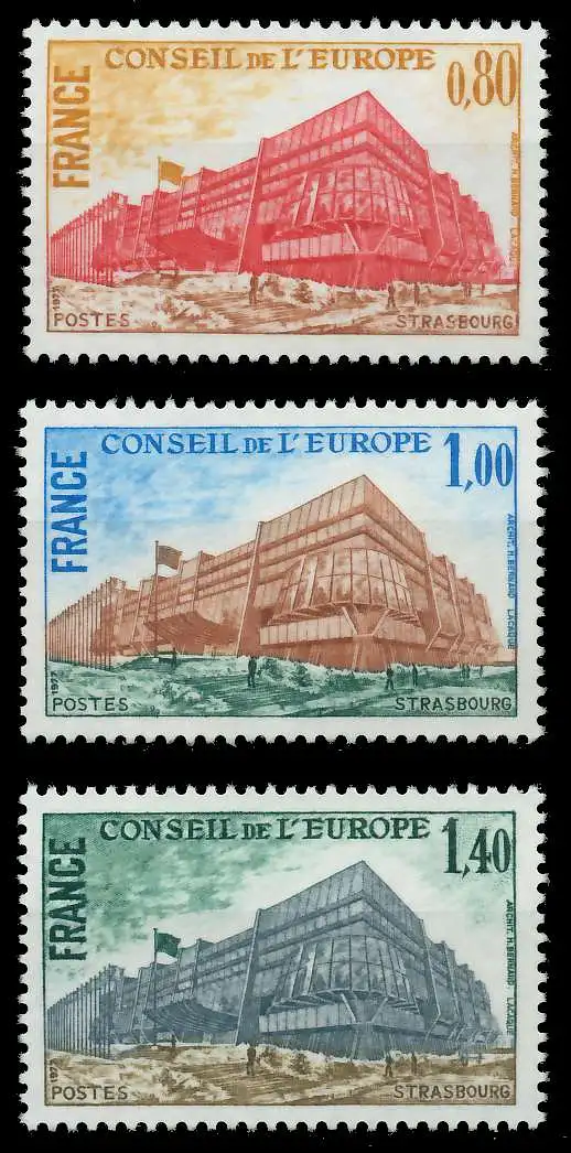 Dienstmarken für den Europarat in Zeichnung Europaratsgebäude Ausgabe von 1977