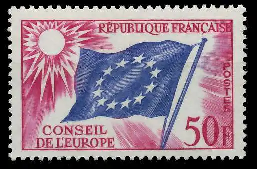 50 Fr. Wert aus der Ausgabe Dienstmarken für den Europarat in Zeichnung Europafahne Ausgabe von 1958
