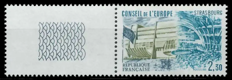 2,30 Fr. Wert aus der Ausgabe Dienstmarken für den Europarat in Zeichnung Plenarsaal Ausgabe von 1981