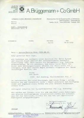 Fa. Brüggemann Austin / Morris Mini Brief 9.1969