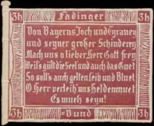 Von Bayerns Joch und Tyraney und seyner großen Schinderey mach uns o lieber Herr Gott frey, Größe/Zustand: 3x3 , guter Zustand, Original alte Reklamemarke die seinerzeit für die Werbung benutzt wurde