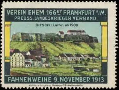 9. November 1913, Verein ehemaliger 166er Frankfurt/M., Größe/Zustand: 4x6 , guter Zustand, Original alte Reklamemarke die seinerzeit für die Werbung benutzt wurde