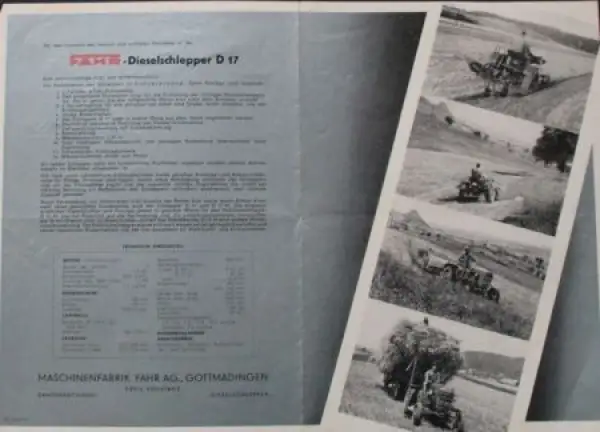 Fahr D 17 Diesel-Schlepper Modellprogramm 1951 Traktorprospekt (9746)
