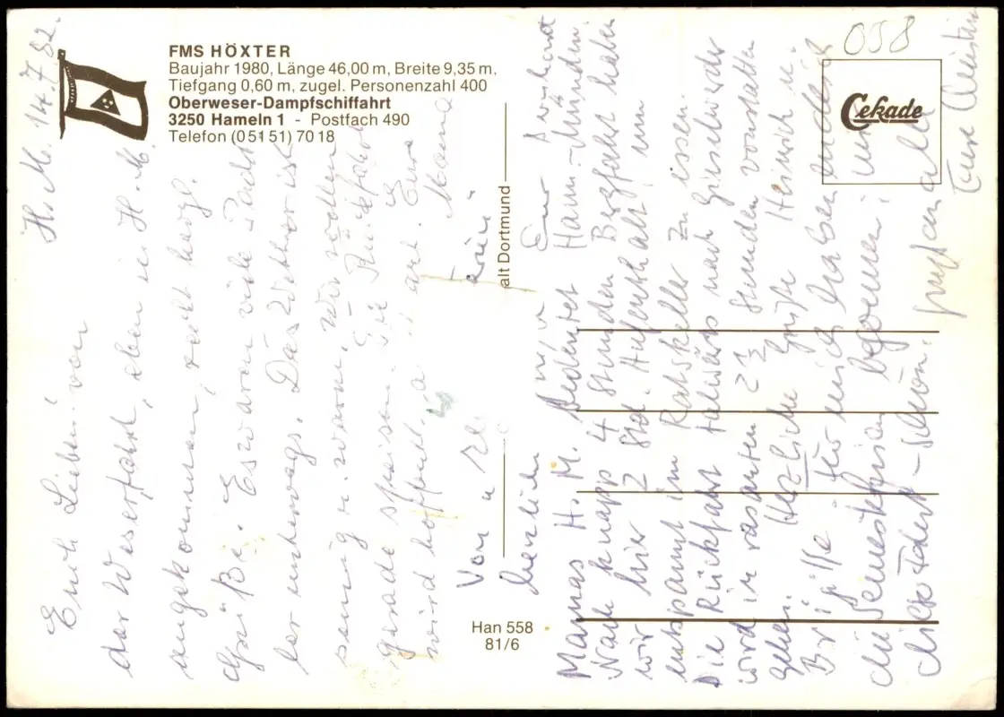 Fahrgastschiff Schiff FMS HÖXTER Oberweser Dampfschiffahrt 1981