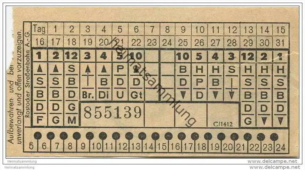 Fahrkarte - Rostock - Rostocker Strassenbahn AG - Fahrschein