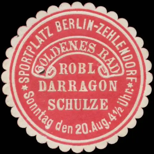 Sonntag den 20. August mit Robl, Darragon, Schulze, Größe/Zustand: 4 , leicht beschädigt, Original Verschluss-Siegelmarke aus Papier welche früher von Behörden, Firmen etc. zum Versiegeln der Briefe benutzt wurden
