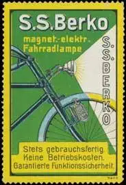 S.S. Berko magnet.-elektr. Fahrradlampe, Fahrrad, Größe/Zustand: 6x4 , guter zustand, Original alte Reklamemarke die seinerzeit für die Werbung benutzt wurde