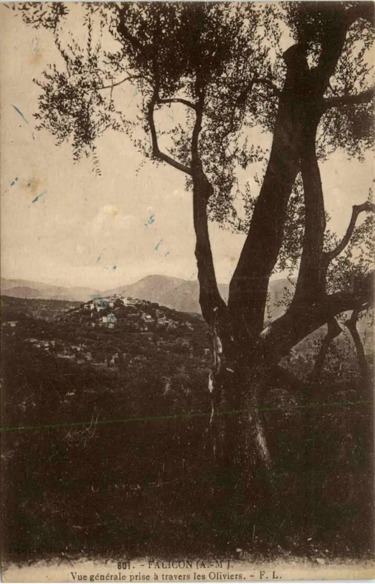 Falicon, Vue generale prise a travers les oliviers -367382