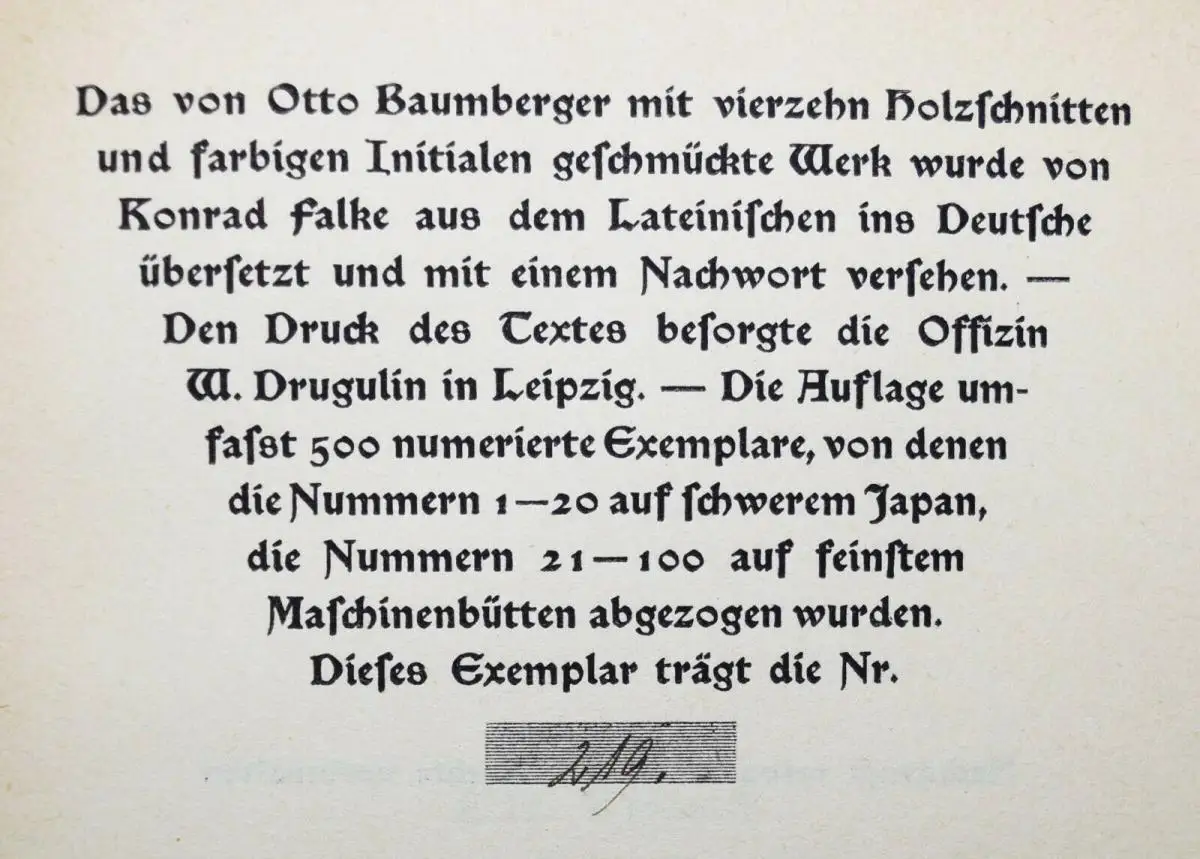 73 S. u. 14 handkol. Orig.-Holzschnitte. OHln. mit goldger. Rückentitel