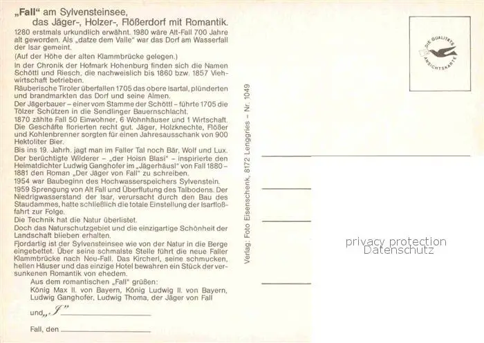 Fall Bad Toelz Sylvenstein Floesserdorf Isar Lenggries postalisch nicht gelaufen 1980 Erhaltung siehe scans [KathaD79] Kathoren