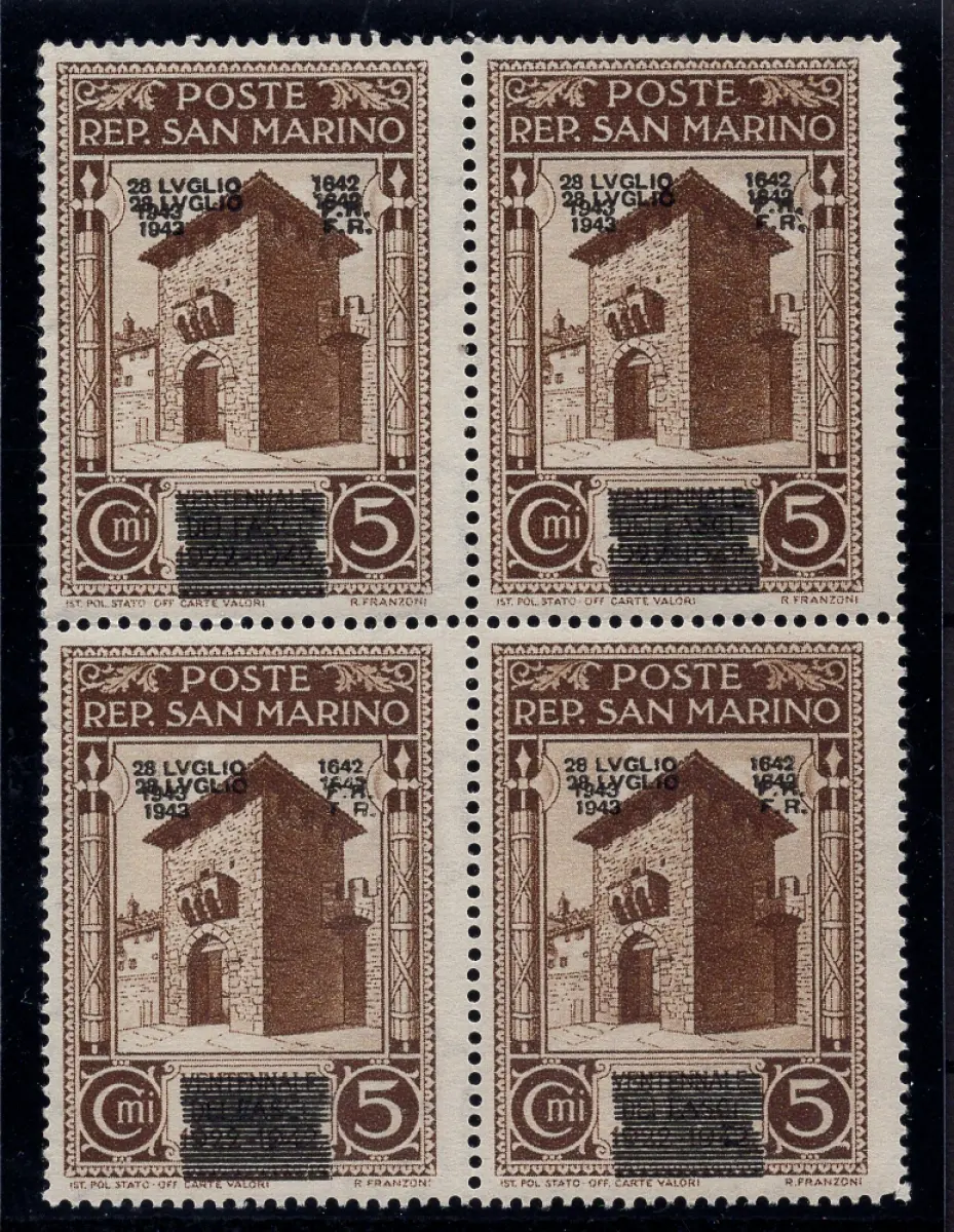 MNH - Vollgummi - Fall des Faschismus Cent. 5 n. 253a Viertel mit gut sichtbarem Doppelaufdruck, perfekt neu mit Vollgummi - Kat. euro 480 Cod. 3105/WEB