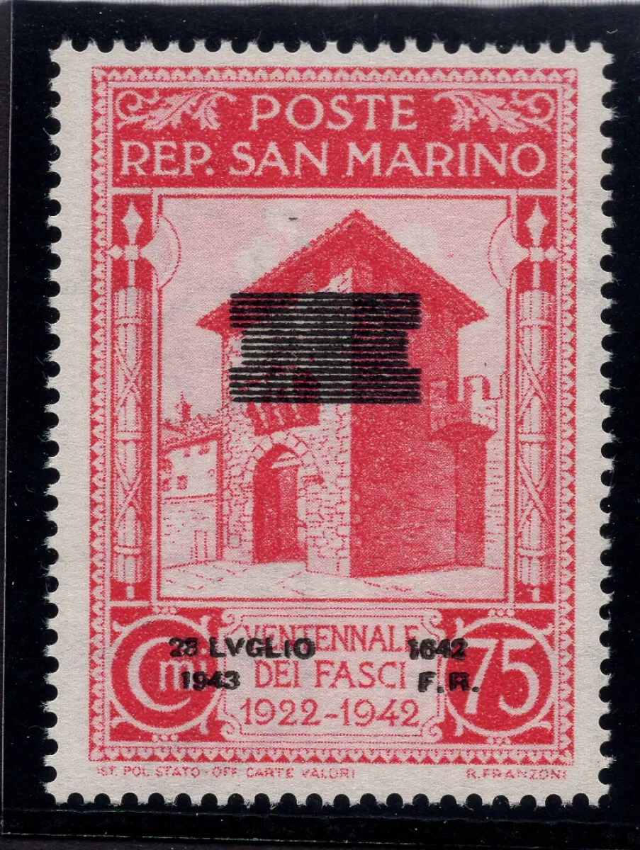 MNH - Vollgummi - Fall des Faschismus Cent. 75 n. 259ecaa stark nach unten verschobener Aufdruck (Leisten in der Mitte und Datum unten), neuer perfekter Vollgummi - Kat. euro 130 Cod. 3115/WEB
