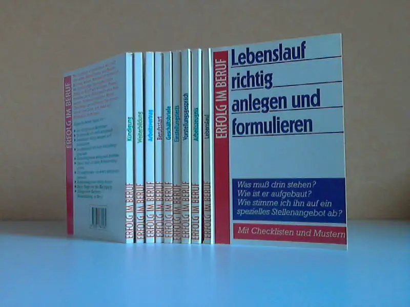 Erfolg im Beruf: Lebenslauf richtig anlegen und formulieren + Arbeitszeugnisse richtig deuten + So überzeuge ich beim Vorstellungsgespräch + Einstellungstest erfolgreich bestehen + Geschäftsbriefe, so wird´s erfolgreich gemacht + Der erfolgreiche Berufsstart + Darauf muß ich beim Arbeitsvertrag achten + Erfolgreiche Karriere, Weiterbildung im Beruf + Keine Angst vor der Kündigung 9 Bücher