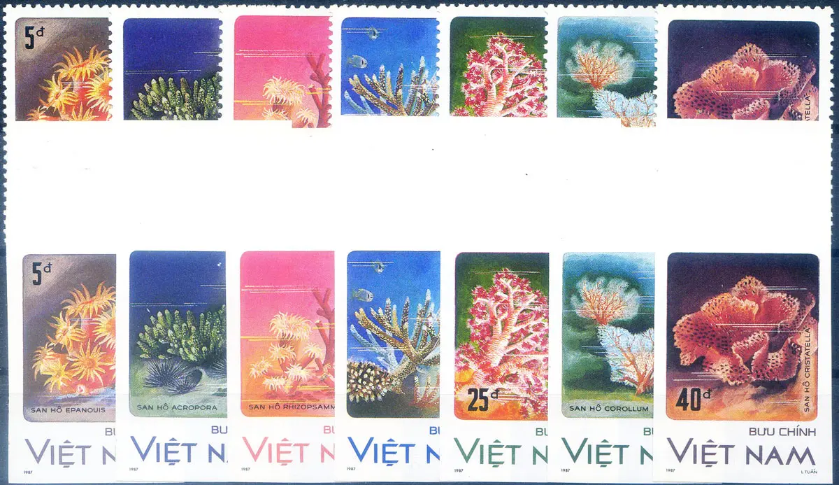 Fauna. Korallen. Serie gezahnt + ungezähnt. Yvert 2019: 841/847 (ohne Gummi, wie ausgegeben).