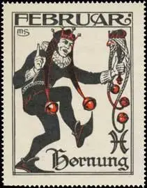 Monatsserie, Hornung, Fasching, Karneval, Schelm, Größe/Zustand: 7x5 , guter Zustand, Original alte Reklamemarke die seinerzeit für die Werbung benutzt wurde
