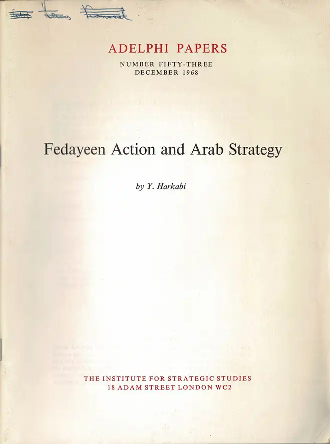 Fedayeen Action and Arab Strategy (= Adelphi Papers, 53).